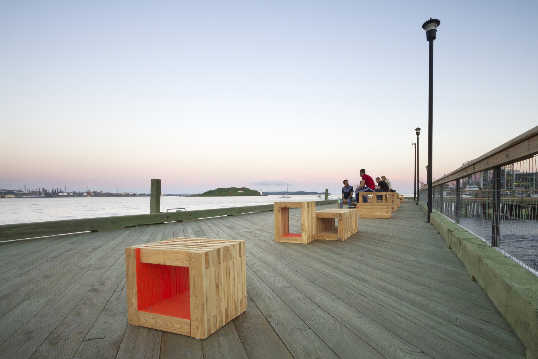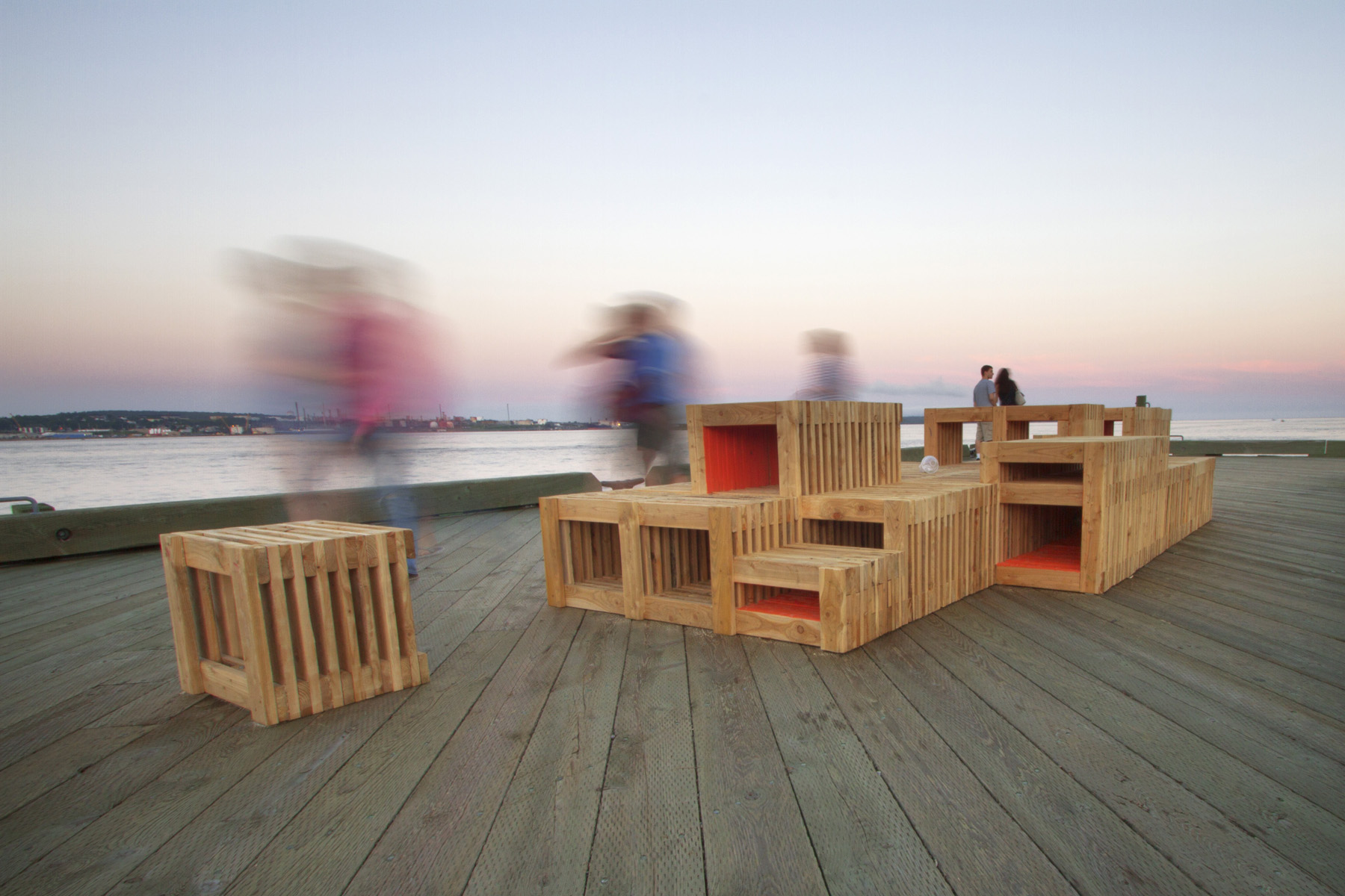 “This installation will activate a portion of the Halifax waterfront boardwalk by creating an active social space for gathering, play, and relaxation; while simultaneously fostering a meaningful connection to place and views to the city’s working harbour,” said Brad Pickard, a co-instructor for the design-build course at Dalhousie University.