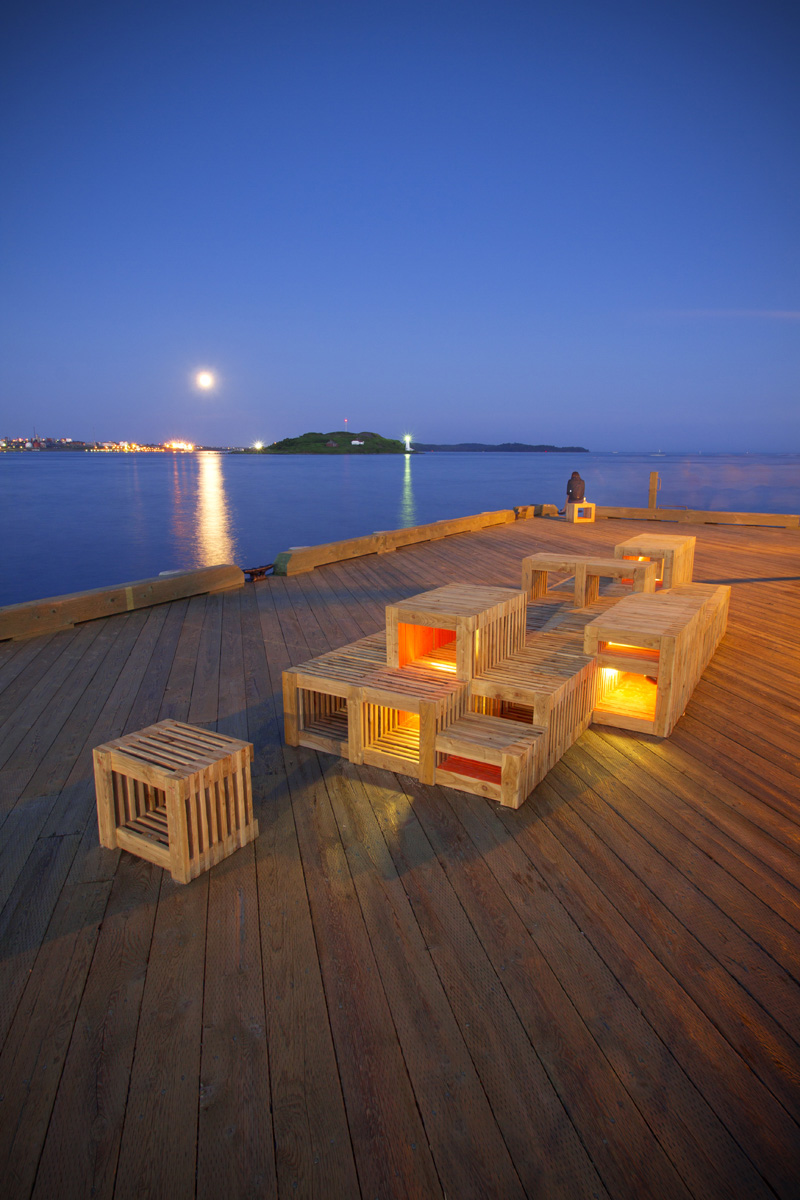Inspired by the shape of stacked wooden lobster traps and shipping crate construction, the installation’s modular design will create a series of social zones, designed to maximize the public amenity on the extended boardwalk near the popular Sands at Salter. Completely built off-site (utilizing the tools and processes at Dalhousie’s School of Architecture) and installed in just two days, the installation of the furniture is expected to be open to the public on July 31st, 2015.